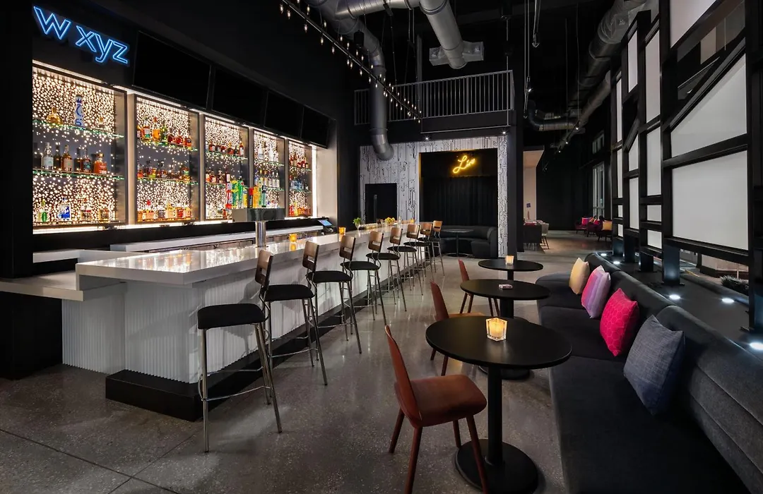 Dining options include the W XYZ(R) Kitchen & Bar, serving hand-crafted cocktails and American dishes, as well as the Splash Bar. Both venues provide a social atmosphere with seating by the pool and views of the area. Guests can also enjoy daily cooked-to-order breakfasts.