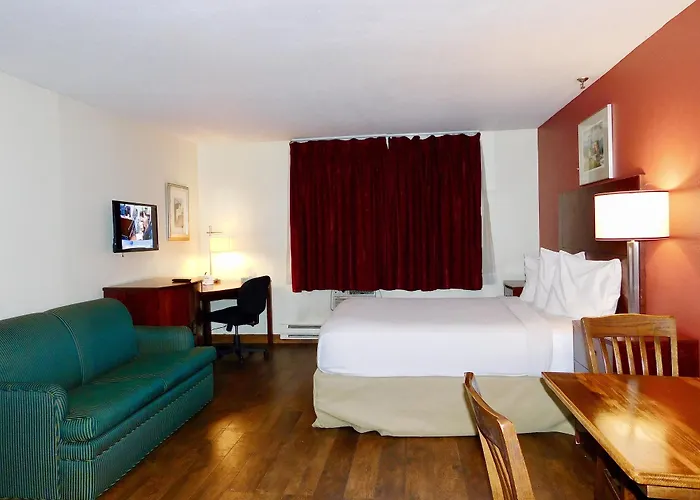 The property provides one meeting room with 800 square feet of space, accommodating up to 40 guests. A business center and complimentary newspapers in the lobby cater to business needs. Outdoor recreational activities like snowshoeing and snowmobiling are also accessible nearby.