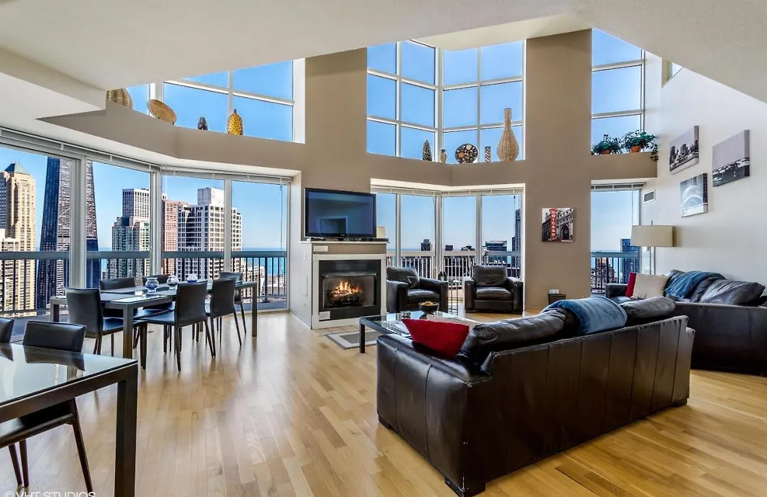 The Penthouse At Grand Plaza offers luxury accommodations in downtown Chicago, featuring a collection of sophisticated penthouse condos with dramatic views of Lake Michigan and the city skyline. This 4-star Chicago hotel includes amenities such as a rooftop pool, fitness center, and direct access to a grocery store.