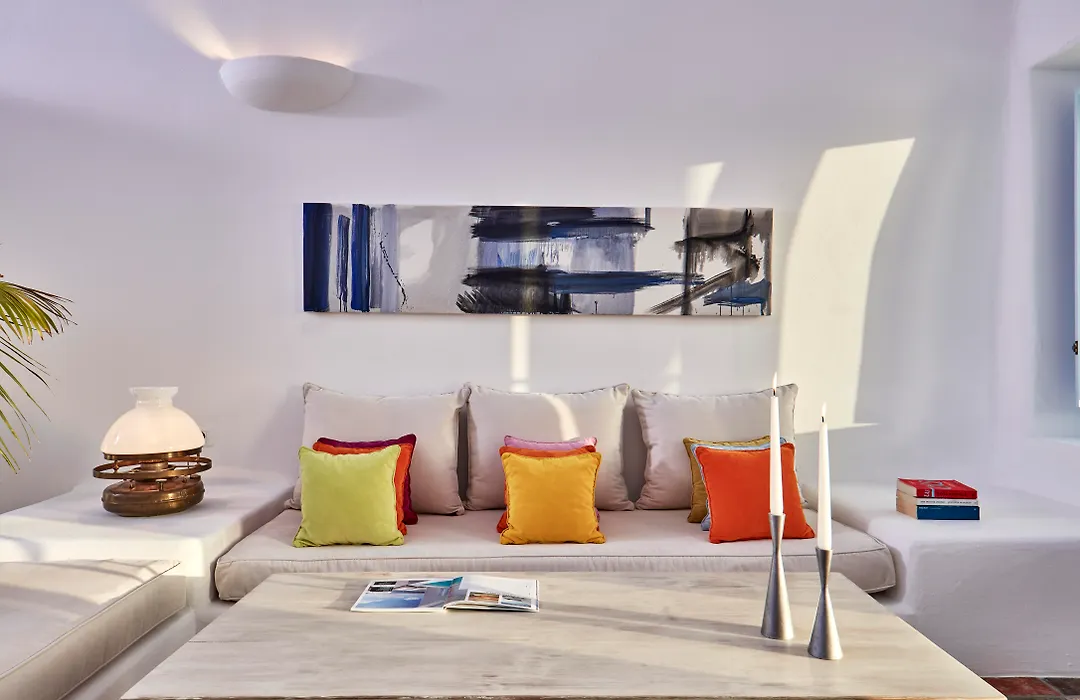 Dining at Astra Suites takes place at the Five Senses Restaurant, offering local delicacies and a menu of classic Greek and Mediterranean cuisine. Guests can also enjoy light meals and drinks at the pool bar, perfect for sunset views.