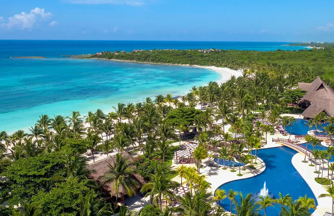 Barceló Maya Beach (Adults Only), a 5-star resort rated 7.7/10 on Booking.com, features 1 miles of private beachfront and luxury accommodations. This adults-only hotel is ideal for guests seeking exclusive services and amenities.