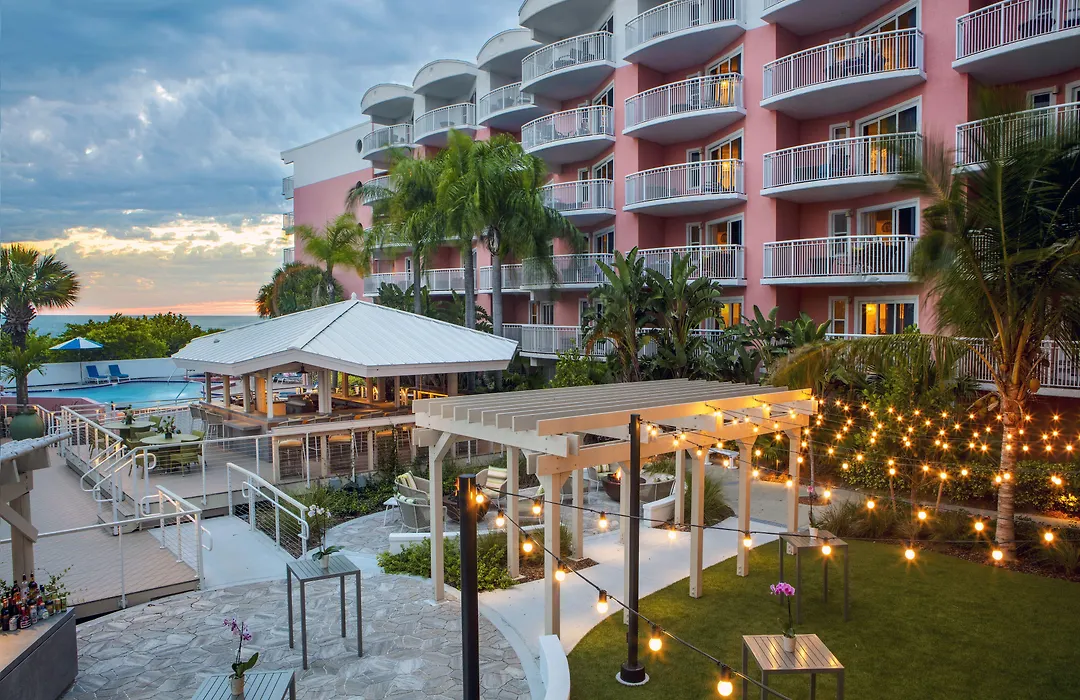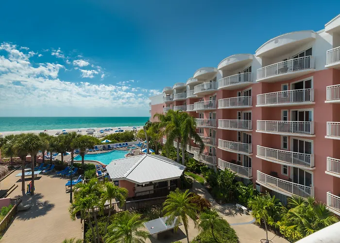 Beach House Suites By The Don Cesar offers a blend of casual elegance with resort amenities just steps from the beach. The 3-star St. Pete Beach hotel features fully equipped kitchenettes in spacious suites and direct beach access, providing ideal accommodations for families and groups.