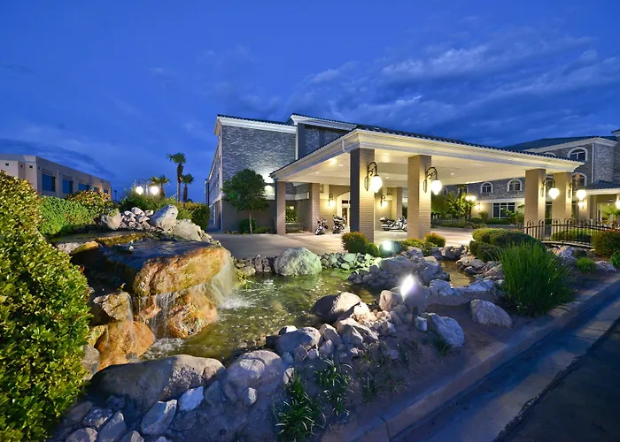 The hotel is situated amid picturesque grounds that include a stream and a quaint footbridge. It is conveniently located within a four-minute drive to the Rosenbruch World Wildlife Museum and Snow Canyon State Park.