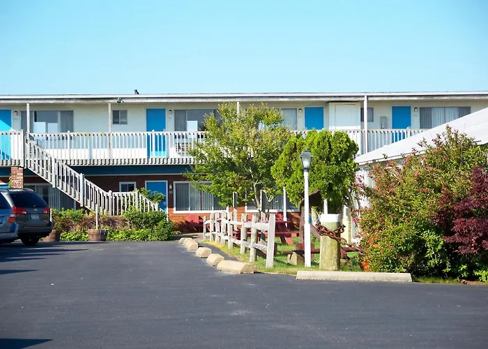 Blue Sea Motor Inn features diverse accommodation options, including oversized rooms with balconies and ground-level efficiencies. Each room is equipped with cable TV, a refrigerator, coffee making facilities, and private bathrooms. Some rooms offer views of Provincetown or the dunes, accommodating families and groups with up to five people per unit.