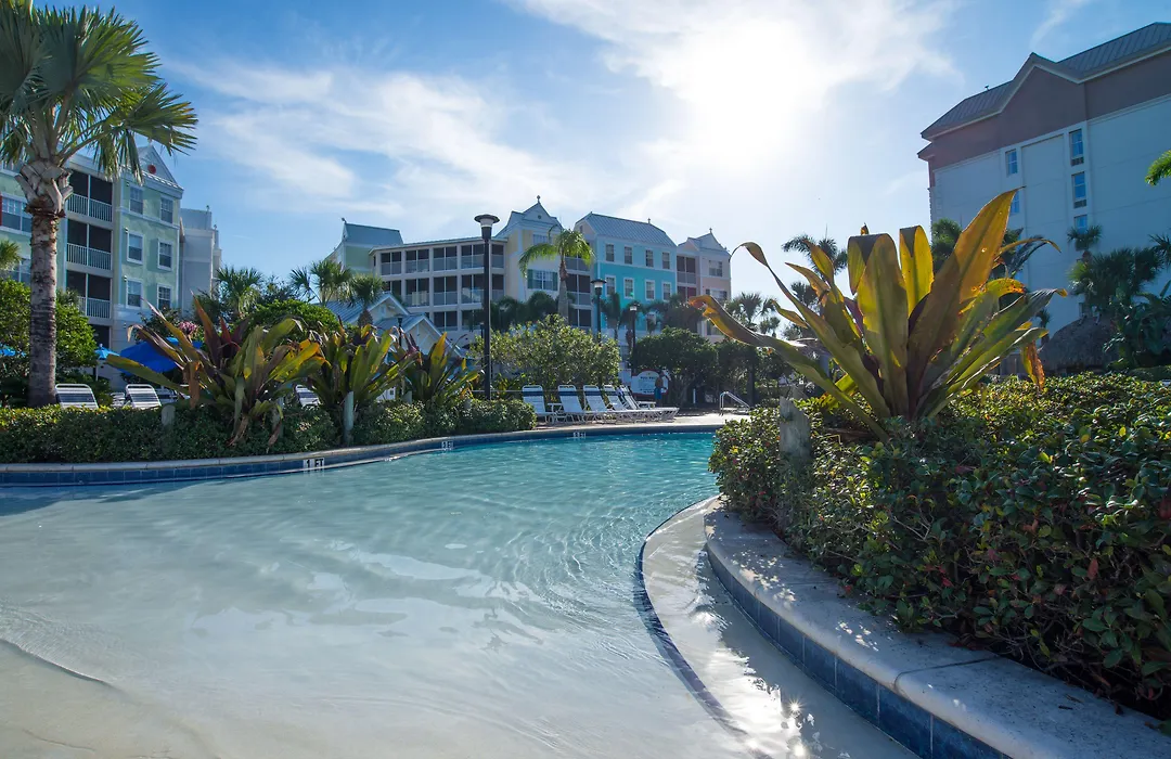 Calypso Cay Vacation Villas, a 3-star Kissimmee hotel rated 8.4/10 on Booking.com, features family-friendly accommodations with large villas complete with full kitchens. Amenities include a year-round outdoor pool, a waterslide, a rock climbing wall, and a continental breakfast.