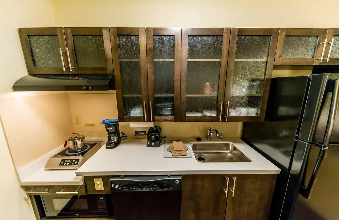 Guest rooms at Candlewood Suites offer comfort and convenience with full kitchens, oversized executive desks, and air conditioning. Each room includes a flat-screen TV with cable channels, a Blu-ray player, and complimentary toiletries. The extended stay amenities ensure guests have all the essentials for long-term stays.