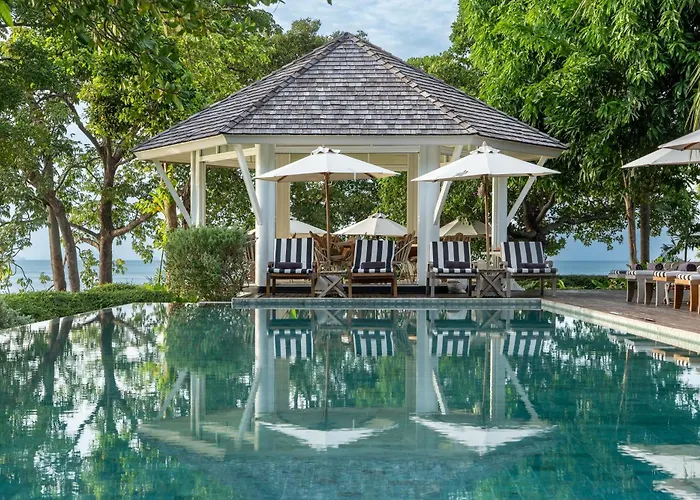 Cape Kudu Hotel, Koh Yao Noi (5-star) is known for its luxury accommodations and scenic views of Phang Nga Bay. This exclusive hotel features amenities like two swimming pools, a chic spa, and a private beach area, perfect for relaxation and exploration. Rated 9.4/10 on Booking.com, it offers an intimate experience amid tropical beauty.