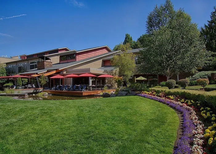 Cedarbrook Lodge, a 4-star SeaTac hotel, offers an authentic Northwest experience with 18 acres of lush grounds and amenities like complimentary Wi-Fi, a fitness center, and a 24-hour Sea-Tac Airport shuttle. The hotel features stylish accommodations designed for both relaxation and productivity.