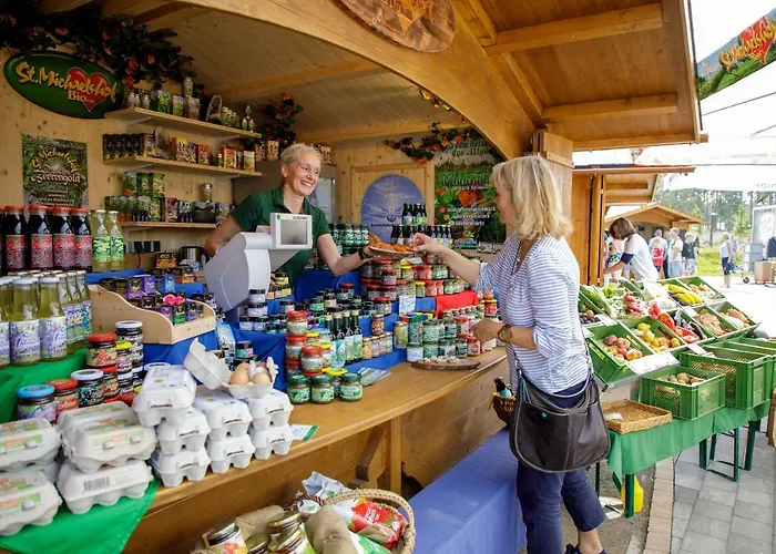 Dining options at Center Parcs Park Allgaeu comprise six restaurants, including the regional Allgäuer Sudstüble, which specializes in Southern German cuisine, and the Market Restaurant, offering all-you-can-eat buffets. Guests can enjoy grilled dishes and handmade hamburgers at Rocket's, or opt for a cozy dining experience at Oachkatzl with upscale regional selection.