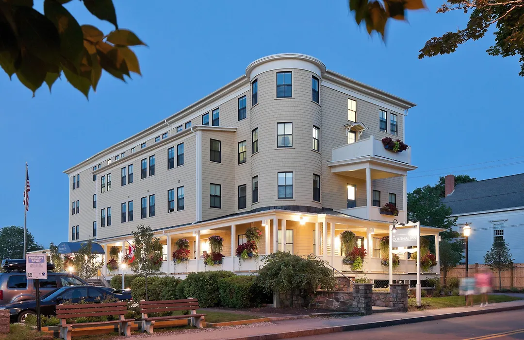 The Colonial Inn, a historic 3-star hotel with an 8.9/10 Booking.com rating, features a heated outdoor pool, hot tub, and a charming wrap-around porch. With a variety of accommodations across four buildings, it welcomes guests seeking a picturesque getaway in Ogunquit.