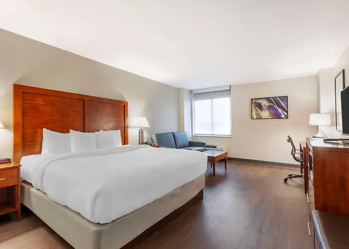 Comfort Inn Conference Center features modern amenities and versatile event spaces, catering to both business and leisure travelers. This 3-star Bowie hotel offers an on-site restaurant, a seasonal outdoor pool, and complimentary high-speed WiFi.