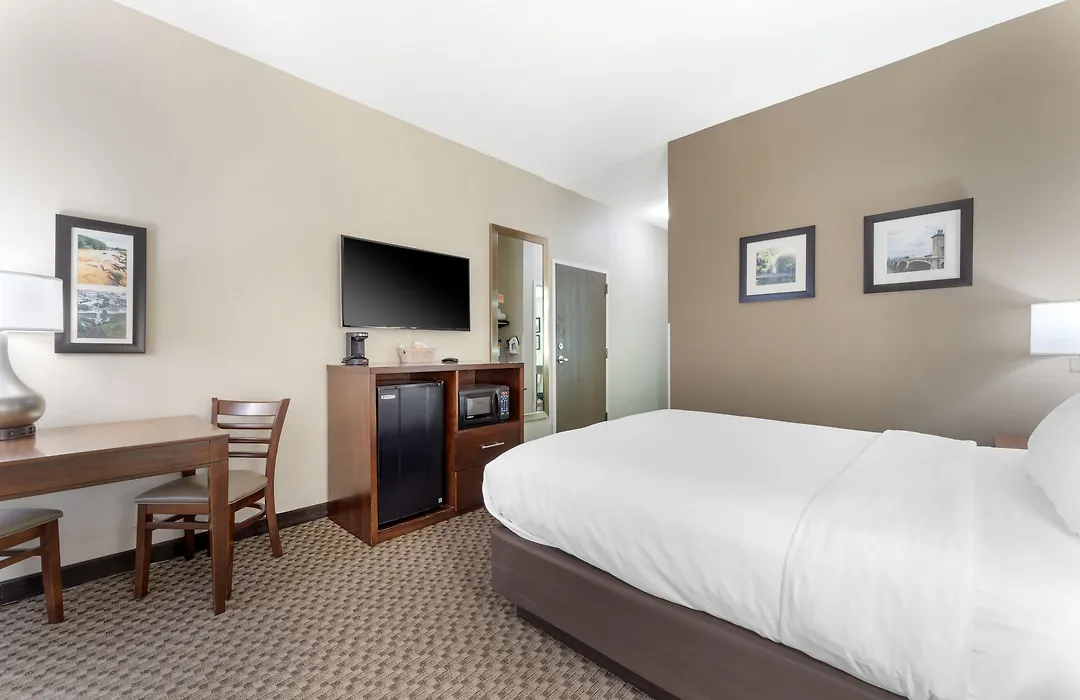 Guest rooms at Comfort Inn include air conditioning, cable television, a microwave, and a refrigerator, allowing for easy meal preparation. Each room features a private bathroom with complimentary toiletries. The hotel also offers suites with spa baths.