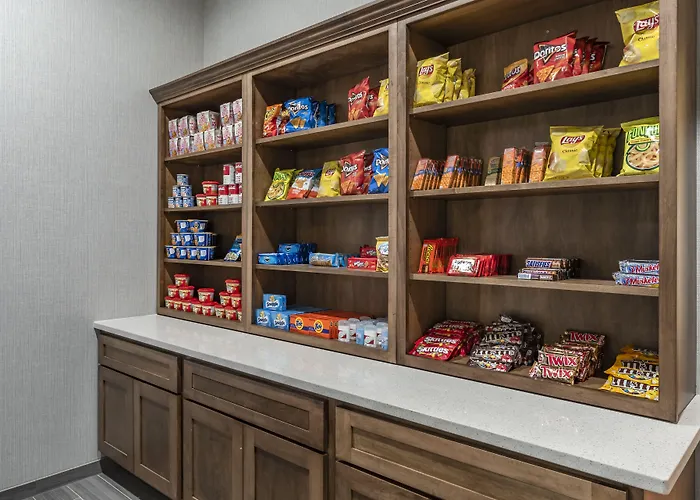 The hotel offers a free hot breakfast that includes eggs, meat, yogurt, fresh fruit, cereal, and various hot waffle flavors. Nearby dining options include Sammy Hagar's Red Rocker Bar and Grill, providing a casual atmosphere.