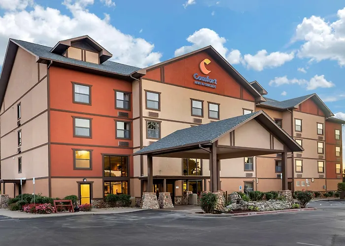Comfort Inn & Suites Branson Meadows offers a family-friendly experience with a 9.1/10 rating on Booking.com. This 3-star Branson hotel features an indoor heated pool, hot tub, fitness center, and complimentary breakfast options.