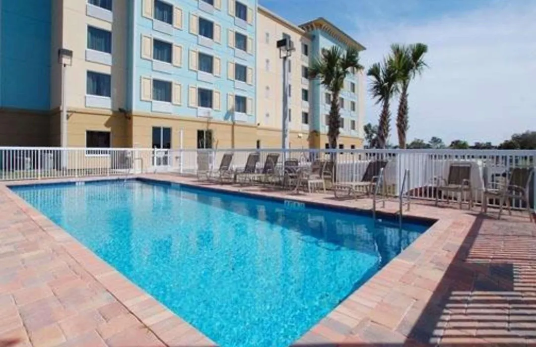 The hotel includes a heated outdoor pool and fitness center, allowing for recreation and relaxation. Guests can also explore attractions such as the Brevard Zoo and Andretti Thrill Park, located a short drive from the hotel.