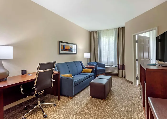 Comfort Suites is a 3-star hotel in Clarksville with a rating of 7.2/10 on Booking.com. The hotel offers amenities like fully equipped kitchens, an indoor heated pool, and free continental breakfast. It is suitable for both business and leisure travelers.