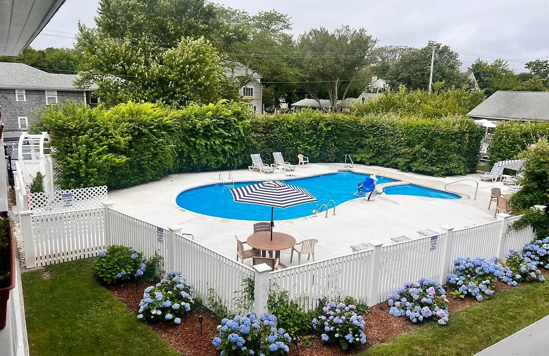 Guests can enjoy the seasonal outdoor pool, ideal for relaxing before or after visiting the beach. A playground and Bocci ball courts are available for family activities. Edgartown Commons also provides beach equipment, including chairs and coolers, for guest convenience.