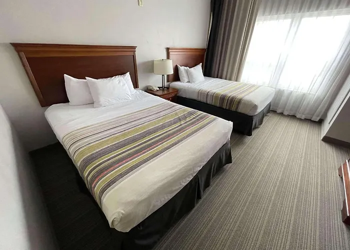 Rooms at Country Inn feature contemporary designs with amenities like flat-screen TVs, coffee-making facilities, and microwaves. For added comfort, whirlpool suites include a fridge for chilling beverages during special occasions.