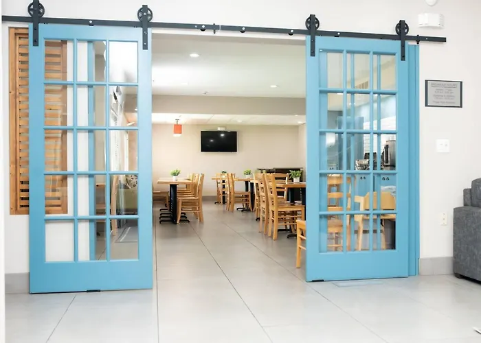 The hotel serves a free, hot breakfast each morning that features signature waffles to start the day. Nearby dining options include Buckhorn Grill & Pub, known for its American cuisine, appetizers, pizza, and burgers.