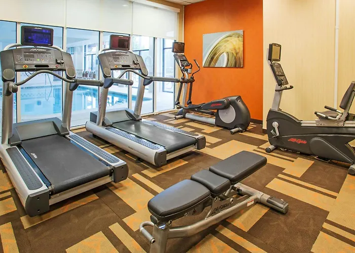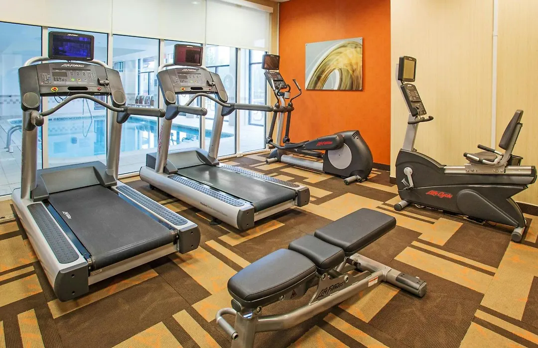 The hotel features a 24-hour fitness center equipped with cardio equipment and free weights. An indoor pool is available for leisure activities. Nearby outdoor activities include hiking and fishing, with access to scenic walking paths around the baseball fields.