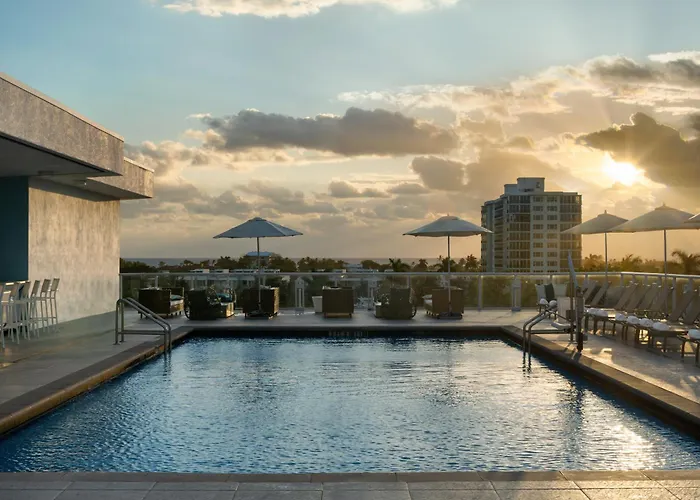 The Courtyard By Marriott Delray Beach is a 3-star beach hotel featuring Delray's only rooftop pool bar, The Reef Bar, with panoramic views of the Atlantic Ocean. Guests can enjoy modern amenities, including a fitness center and on-site dining options at The Bistro.