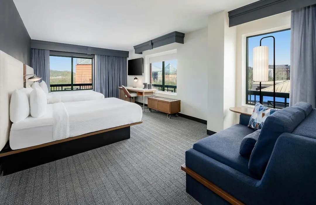 Courtyard by Marriott Chattanooga Downtown offers a blend of modern comforts with a 3-star rating and is rated 8.6/10 on Booking.com. It features an indoor pool, fitness center, and on-site dining options including The Bistro for breakfast and dinner. The hotel is conveniently located near popular attractions such as the Tennessee Aquarium and Coolidge Park.