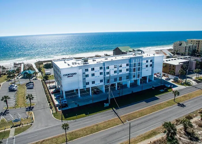 Courtyard By Marriott Fort Walton Beach-West Destin is a 3-star beachfront hotel overlooking the Gulf of Mexico, offering luxurious guest rooms with spectacular views of Okaloosa Island. The property features an outdoor pool and Bistro for dining options. It is suitable for both business and leisure travelers.