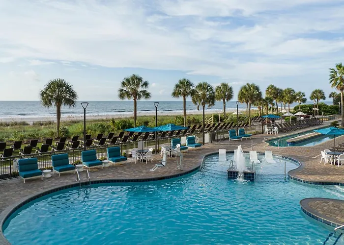 Courtyard By Marriott Myrtle Beach Oceanfront offers beachfront accommodation with resort-style amenities, including an outdoor pool, an indoor and outdoor lazy river, and access to the Grand Strand. This 3-star Myrtle Beach hotel features a fitness center and a restaurant serving American dishes, with a Booking.com rating of 8.9/10.