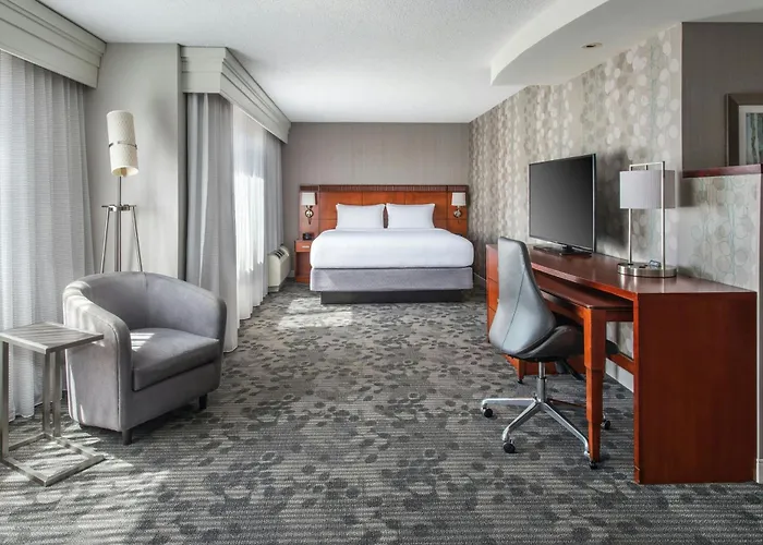 Rooms at Courtyard By Marriott Gaithersburg Washingtonian Center include amenities such as flat-screen televisions, air conditioning, and complimentary Wi-Fi. Thoughtful touches include pillow menus and laptop-friendly workspaces, ensuring guest convenience and comfort. Some units feature lake views, providing an appealing perspective of the surrounding area.