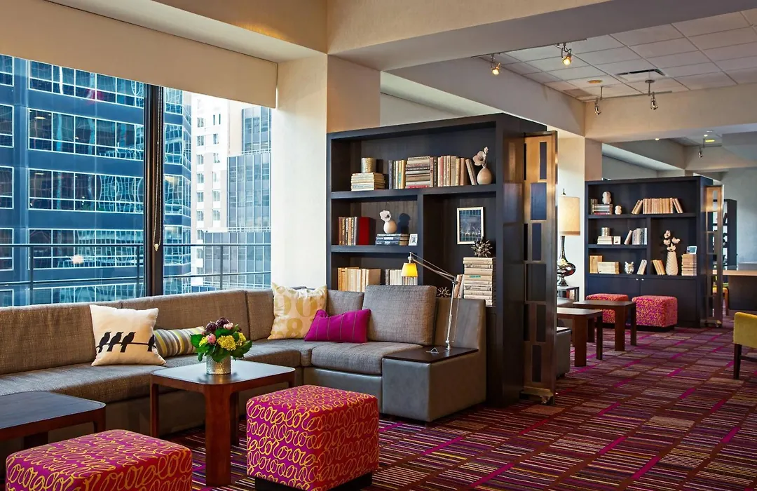 The hotel offers a 12th-floor lounge and a business library equipped with signature media pods. Business travelers can utilize large in-room workstations and ergonomic chairs. Leisure amenities include a 24-hour fitness center featuring modern equipment.