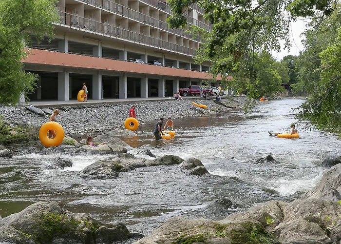 Creekstone Inn is an 8.8/10 rated, 2-star hotel in Pigeon Forge that caters to budget travelers and families. The property features an outdoor seasonal pool and rooms with private balconies overlooking the Little Pigeon River. The hotel offers attentive service and convenient amenities.