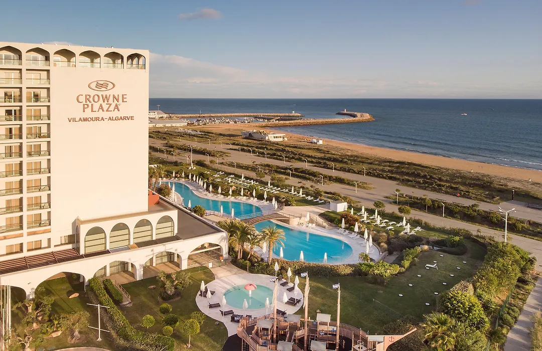 Crowne Plaza Vilamoura - Algarve By Ihg is a 5-star beachfront hotel featuring premium amenities such as an outdoor pool, wellness spa, and golf-course shuttles. This Vilamoura hotel offers spacious air-conditioned rooms, multiple dining options, and extensive conference facilities.