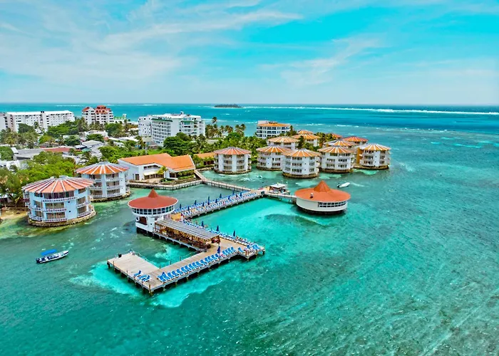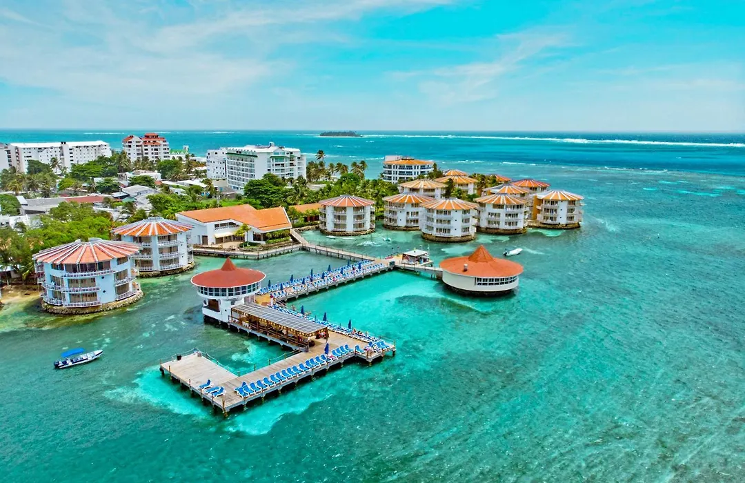 Decameron Aquarium, a 3-star all-inclusive resort rated 6.9/10 on Booking.com, features unique circular towers with panoramic Caribbean Sea views. Amenities include six on-site restaurants, an outdoor swimming pool, and a children's pool, providing a vibrant family-friendly atmosphere.
