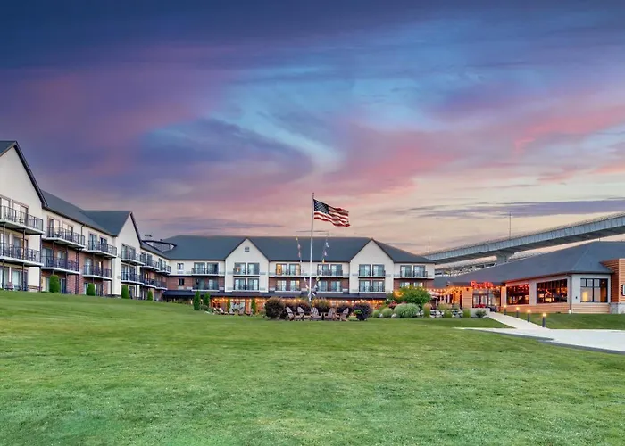 DoubleTree By Hilton Port Huron is a 4-star hotel featuring modern amenities and a riverside location with views of the Blue Water Bridge. Guests can enjoy dining at Freighters Eatery & Taproom, along with amenities like an indoor pool and fitness center.