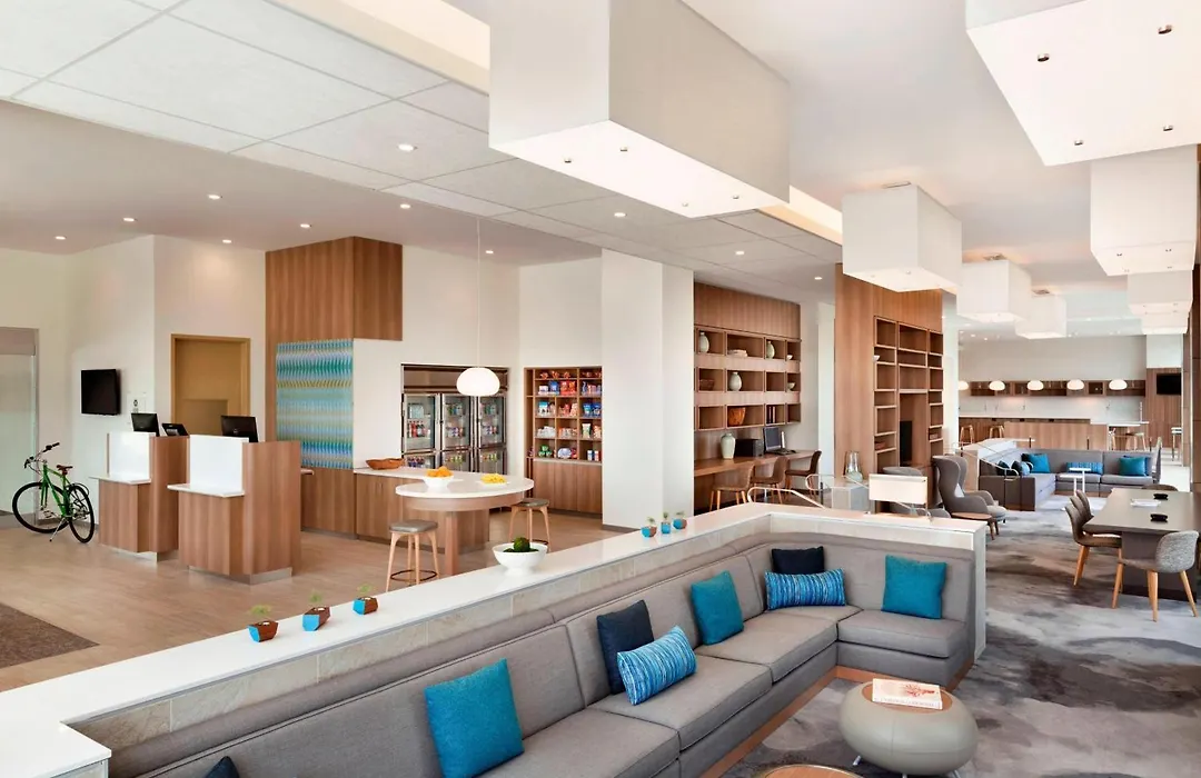 The hotel offers a variety of on-site options including a refreshing outdoor pool and a fitness center equipped with state-of-the-art cardio machines. Public spaces are designed for both work and social interaction, inviting guests to unwind.