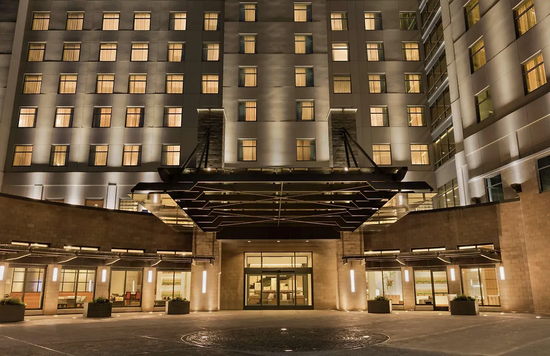 Dining options at Embassy Suites include the signature restaurant Grain & Cane, which offers seasonally inspired dishes, and a Starbucks located in a library lounge environment for quick snacks. Al fresco dining is available, and room service can be arranged for private dining in the suites.