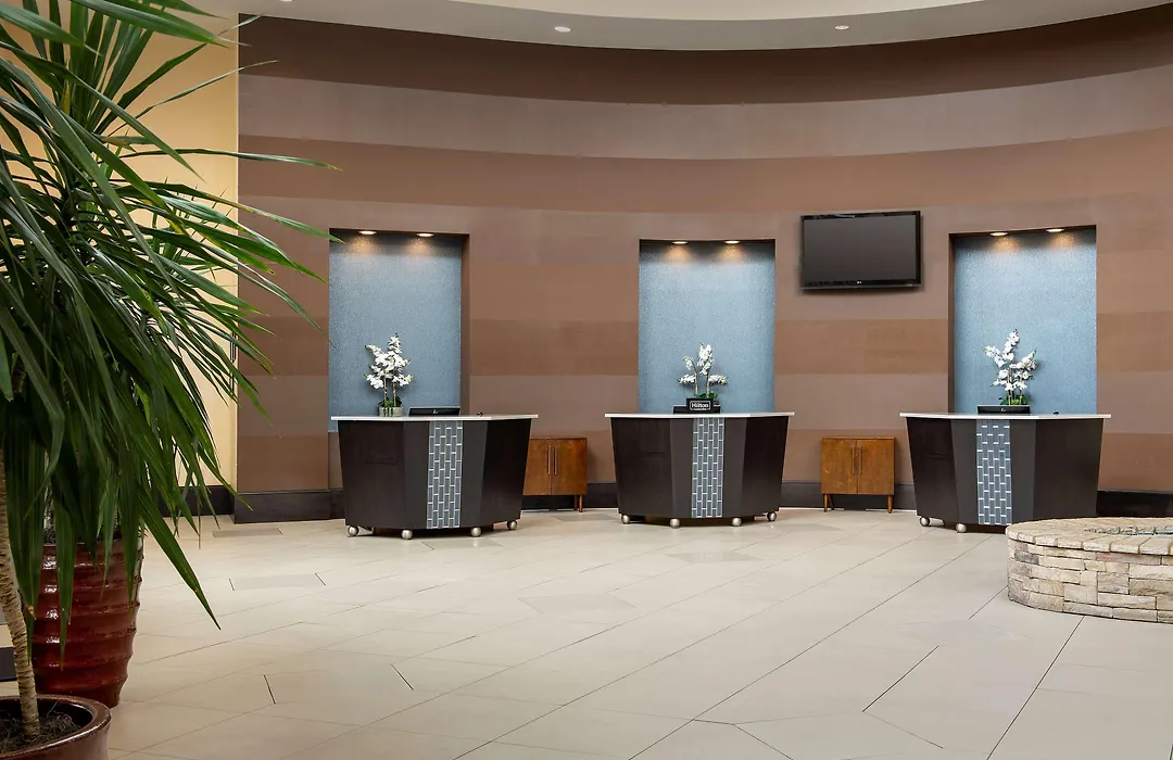 Leisure amenities include an indoor pool, a spa tub, and a fitness center accessible 24 hours. The hotel also provides event spaces that can accommodate gatherings for up to 1200 guests, making it suitable for business functions.