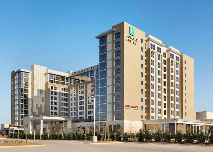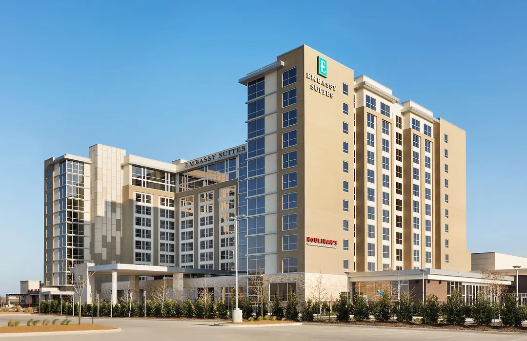 Embassy Suites By Hilton Denton Convention Center is a 4-star hotel featuring an outdoor and indoor swimming pool, a fitness center, and comprehensive meeting facilities. With a Booking.com rating of 9.1/10, it offers spacious accommodations and on-site dining options.