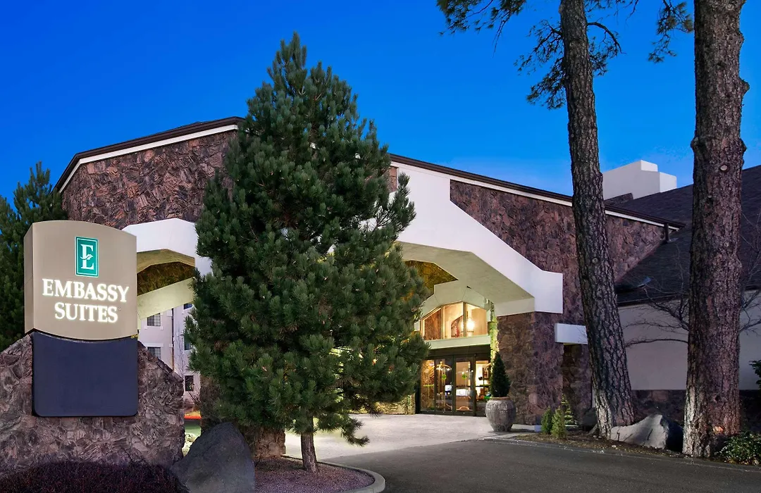 Embassy Suites By Hilton Flagstaff is a 3-star hotel offering spacious two-room suites with dedicated living and sleeping areas. Guests can enjoy amenities such as a free cooked-to-order breakfast and an outdoor heated pool.