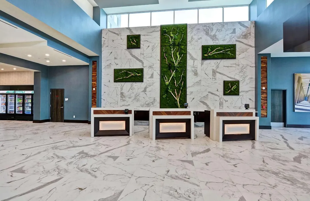 Embassy Suites offers easy access to nearby attractions for family fun, including Splash Island Family Water Park and Natural Valley Ranch for horseback riding. The nearest bus service, the Plainfield Connector, is a short 25-minute walk.