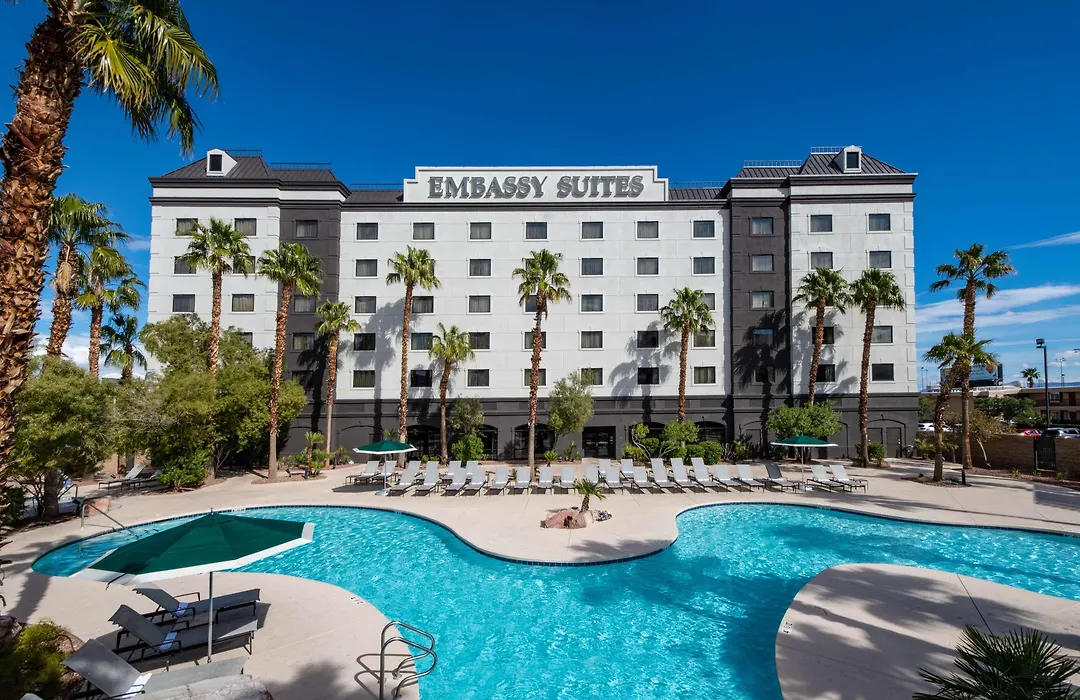 Embassy Suites By Hilton Las Vegas is a 4-star all-suite hotel featuring spacious accommodations with separate living areas. Guests enjoy a free cooked-to-order breakfast and complimentary evening reception with snacks and beverages.