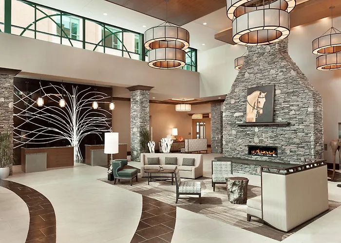 Embassy Suites Saratoga Springs is located a short walk from Broadway, offering access to numerous shops and restaurants. The hotel is also close to local attractions like the Saratoga Race Course and the National Museum of Dance & Hall of Fame, both within a 10-minute drive.