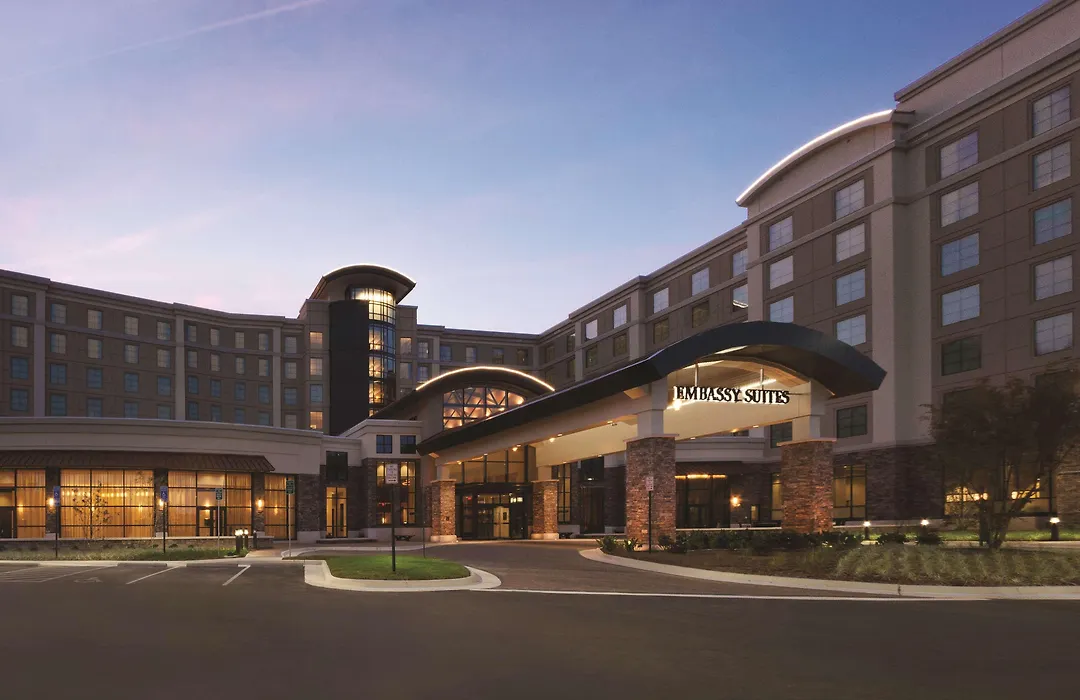 Each suite at Embassy Suites Springfield features a seating area, refrigerator, microwave, and two 40-inch LED HDTVs. The hotel provides complimentary wireless Internet access and a daily evening reception with snacks and beverages for guests.