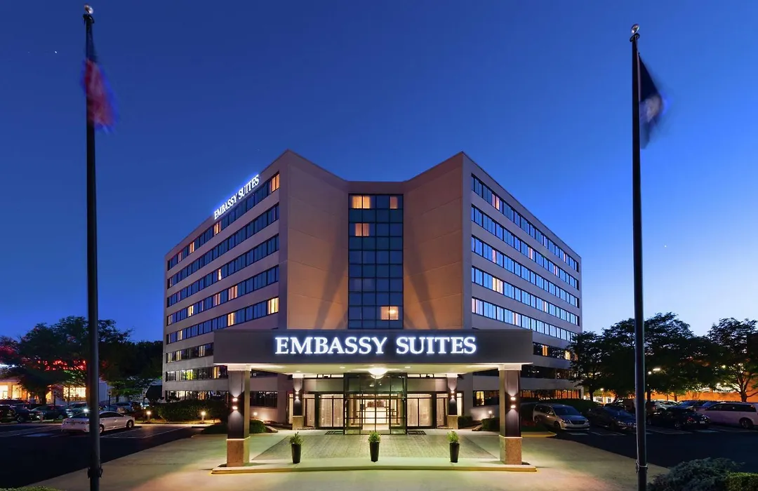 Embassy Suites Tysons Corner offers a 4-star experience with spacious accommodations, featuring 234 suite and non-suite rooms with thoughtful amenities. Guests benefit from a free cooked-to-order breakfast and a complimentary evening reception, along with access to a fitness center.
