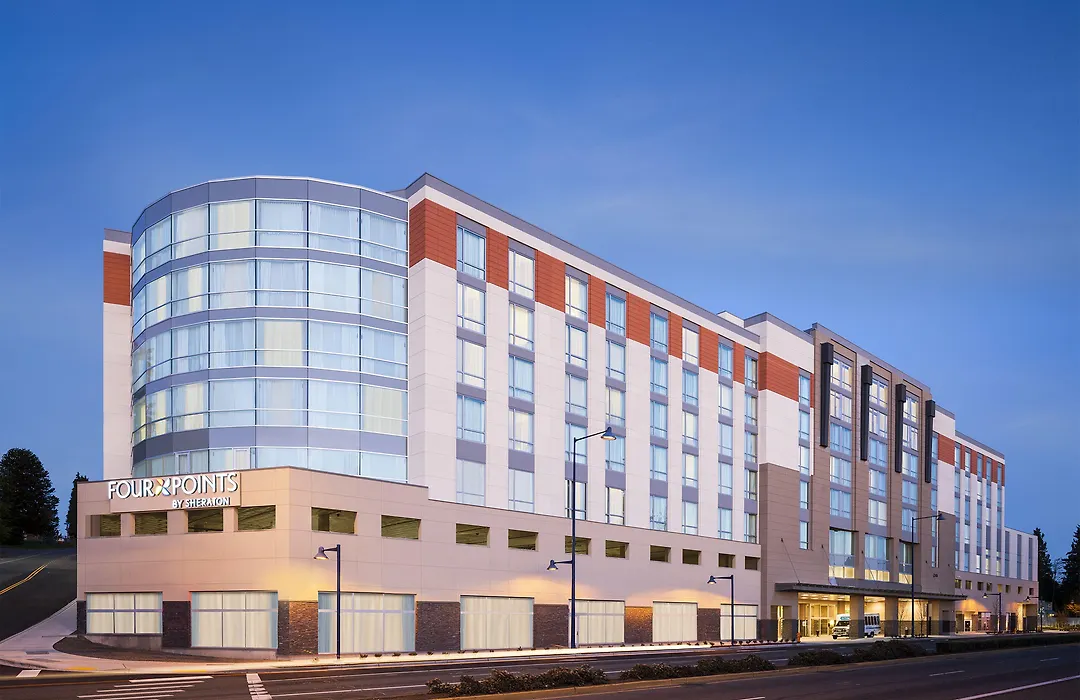 Four Points By Sheraton Seattle Airport South offers 3-star accommodations in Des Moines, featuring spacious rooms with ultra-comfortable beds and an on-site American restaurant. Amenities include a heated outdoor pool, a 24-hour fitness center, and the convenience of being 5 miles from Seattle-Tacoma International Airport.