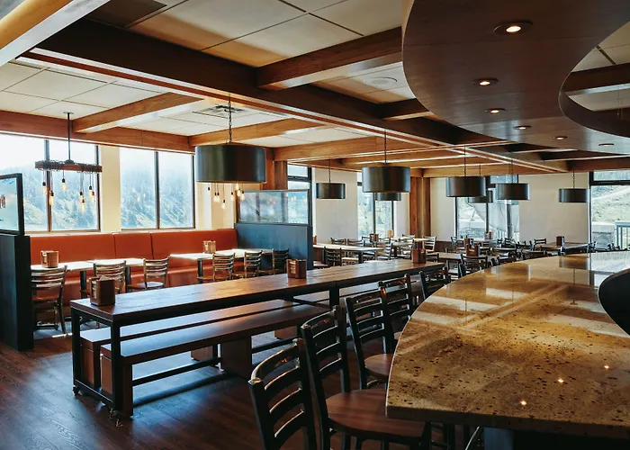 Dining options at Glacier View Lodge include Altitude Restaurant, serving locally-sourced Canadian cuisine with picturesque glacial views, and Chalet, offering a casual self-serve dining experience. Organized guided tours include a welcome reception with drinks and hors d'oeuvres on the glacier, enhancing the culinary experience.