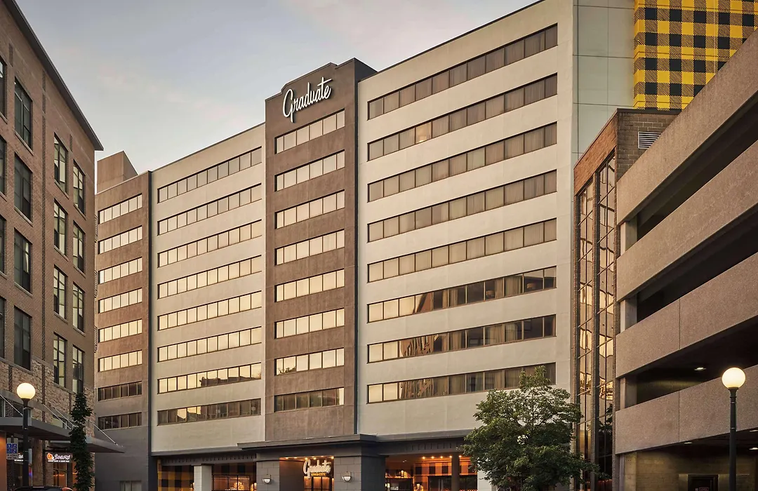 Graduate By Hilton Iowa City is a 4-star hotel rated 8.6/10 on Booking.com, offering modern accommodations inspired by local culture and history. This hotel features amenities such as a fully equipped fitness center, an indoor swimming pool, and diverse dining options.