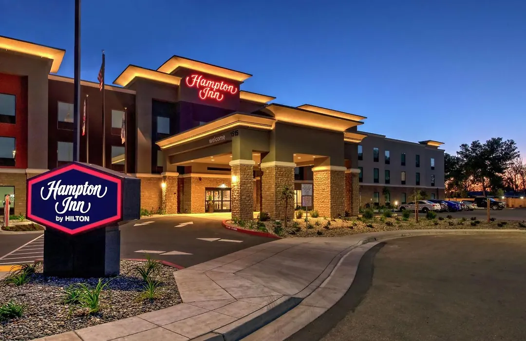 Hampton Inn Fresno Airport features comfortable accommodations and convenient amenities with a 3-star rating (8.9/10 on Booking.com). This Fresno hotel includes an outdoor pool, fitness center, and a buffet breakfast. The hotel is suitable for both leisure and business travelers.