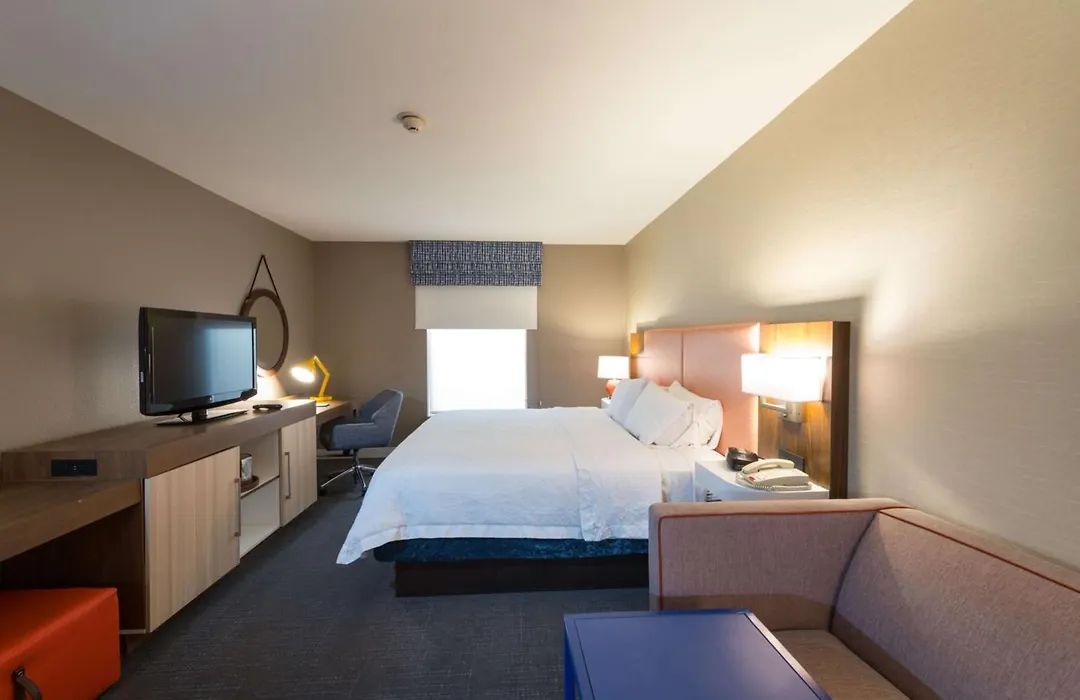 All guestrooms at Hampton Inn provide air conditioning, a minifridge, microwave, coffee maker, and a living area with a sofa bed. The hotel offers complimentary high-speed internet access and a range of toiletries for guest convenience.