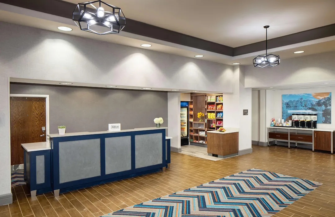 Hampton Inn offers a free breakfast buffet with a grocery/convenience store available on-site. Nearby dining options include Shake Shack, Café Formaggio, and Seasons 52, all within 1 miles of the hotel.